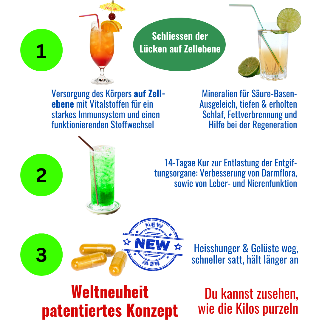 Einen Weg auf rein natürlicher Basis. OHNE Nebenwirkungen, ohne Shakes, geschmacklich auf höchstem Niveau und mit dem patentierten